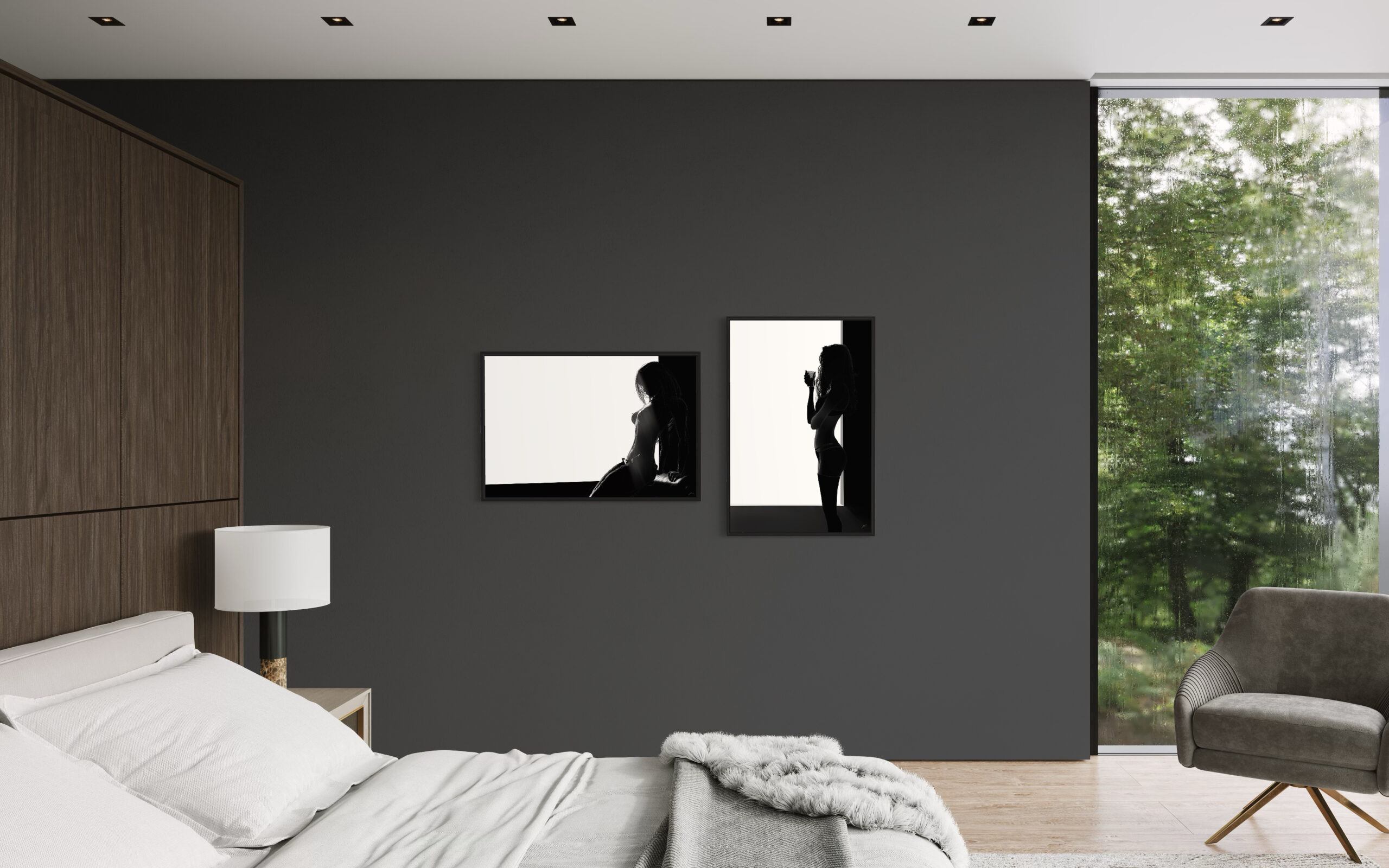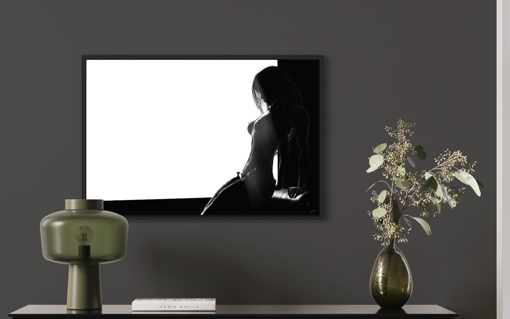 Avec Shadow 2, j'ai voulu pousser l'exercice du clair-obscur à son paroxysme. Cette peinture ne s'encombre pas du superflu : elle se concentre sur la ligne pure. Le sujet est plongé dans un contre-jour si violent que la silhouette semble se détacher du vide. Ce qui me fascine dans cette composition, c'est la manière dont la lumière "mange" les bords du corps, laissant deviner les courbes sans jamais tout dévoiler. C'est une œuvre sur le mystère, le calme et la puissance visuelle du blanc pur face au noir total.