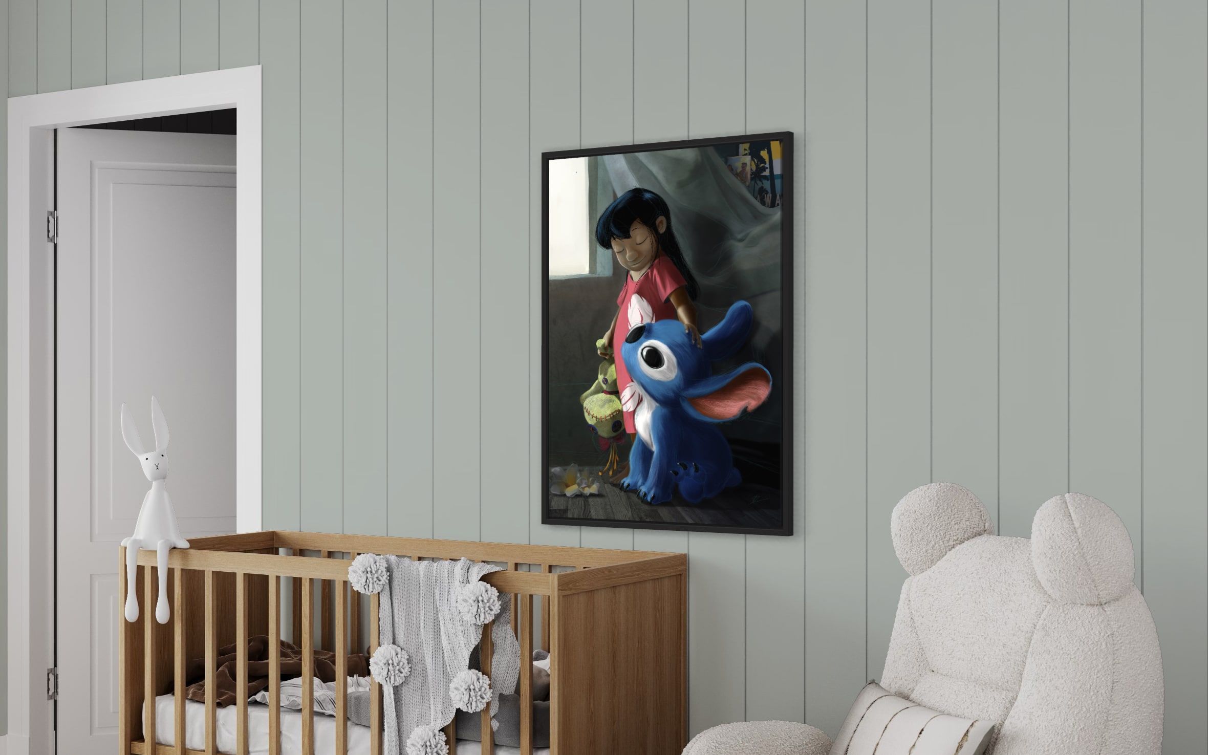 Ce réalisme et cette douceur émotionnelle sont le fruit d'un travail 100% numérique. Parti d'une page blanche, j'ai sculpté la lumière et les textures au pinceau numérique pour donner vie à cette scène. Chaque détail, de la couture de Scrump aux reflets dans les grands yeux de Stitch, a été pensé pour renforcer l'émotion. Pour que cette tendresse vous parvienne intacte, l'impression est réalisée sur Dibon aluminium avec une finition mate anti-reflets. Cette technique absorbe la lumière ambiante et préserve chaque détail, vous permettant de plonger dans l'œuvre sans distraction. L'encadrement en caisse américaine en aluminium noir offre une finition galerie épurée qui met l'image en valeur.